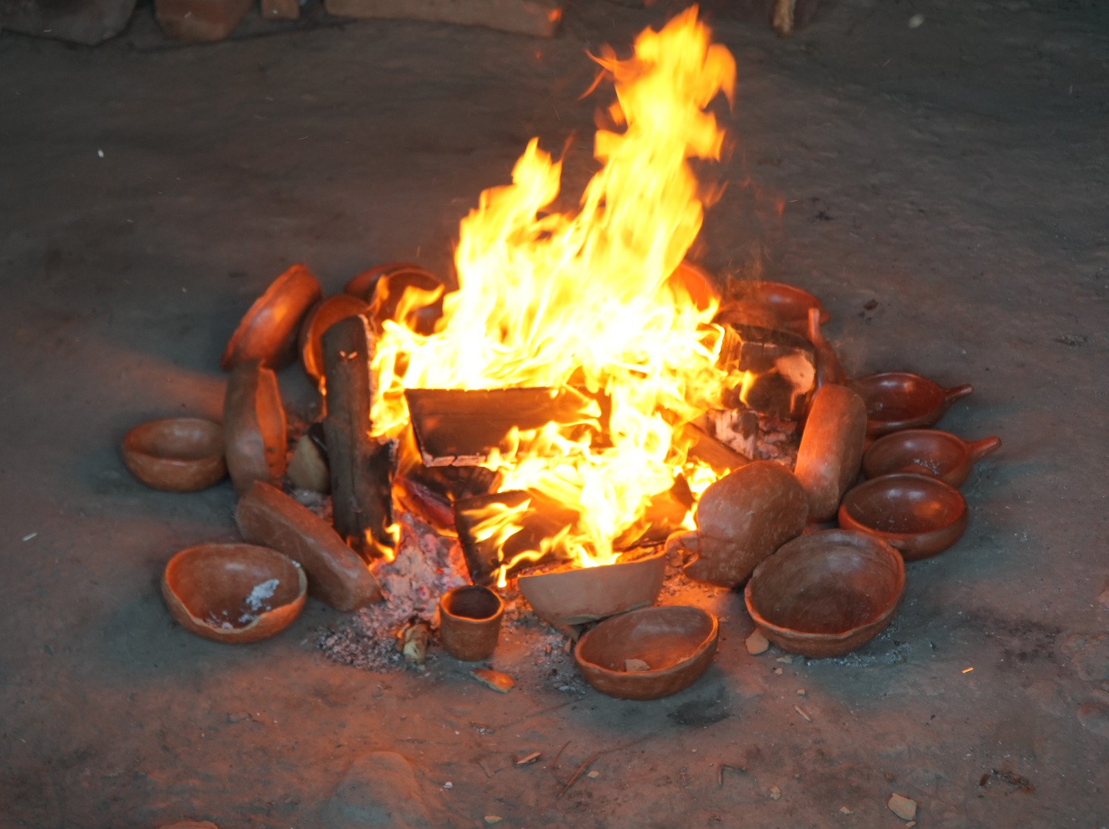 “Estoy contenta de haber tenido todas estas visitas como alumnos que yo les he enseñado a trabajar …llevamos greda, la machacamos, el cernido, la mojamos, como hacer harina para pan, la amasamos y ahí empezamos a trabajar”, explicó Benedicta sobre una parte del proceso productivo.