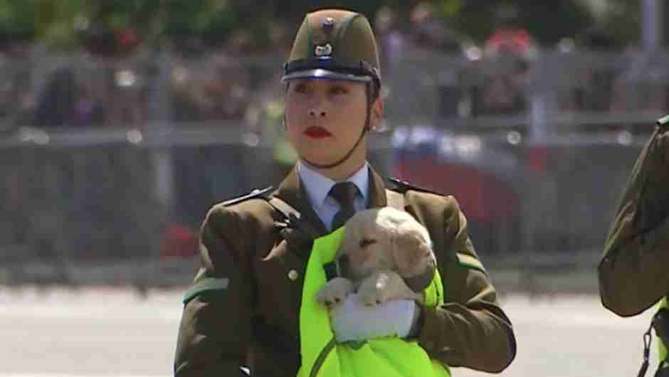 Uno de los momentos más esperados de este evento transmitido por televisión, es el paso de Carabineros de Chile, donde participa su grupo de adiestramiento canino con tiernos cachorritos.