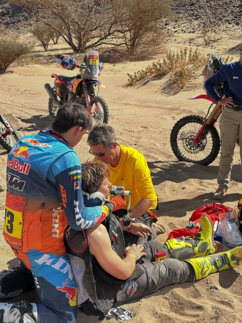 La baja del chileno fue confirmada posteriormente por su mecánico, Luciano Villavicencio, quien explicó a Radio Bíobío que el deportista sufrió una dislocación de hombro, lesión que le impide continuar en la prueba considerada la más extrema del motociclismo mundial.