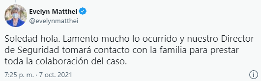 “Nuestro director de Seguridad tomará contacto con la familia para prestar la colaboración del caso”, dijo la alcaldesa Matthei.