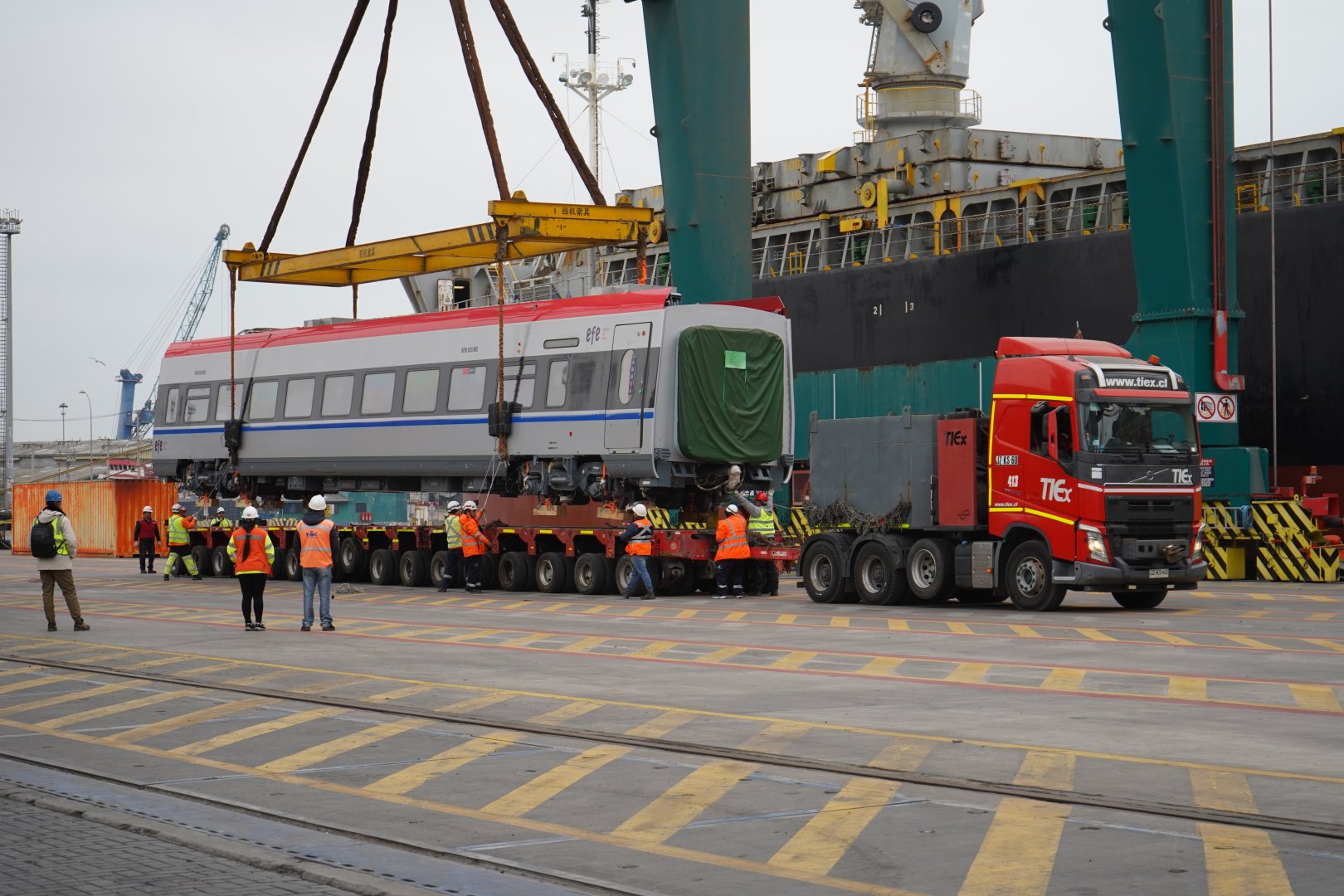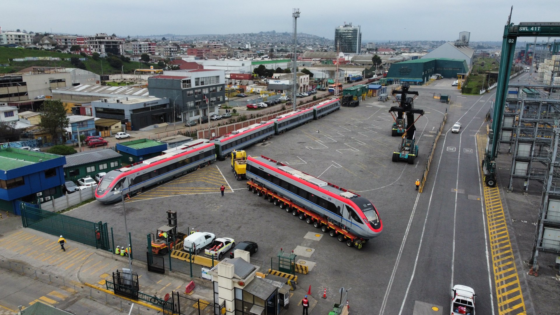 Luego de un mes y medio de viaje aproximadamente, arribaron al puerto de San Antonio en el terminal de DP World, los últimos 4 nuevos trenes que componen la nueva flota del servicio Expreso Chillán-Estación Central, de un total de seis que operarán este tramo de 400 kilómetros y que son los más modernos de Sudamérica.