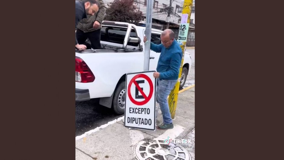 Diputado retira letrero de estacionamiento exclusivo de otro parlamentario en Puerto Montt